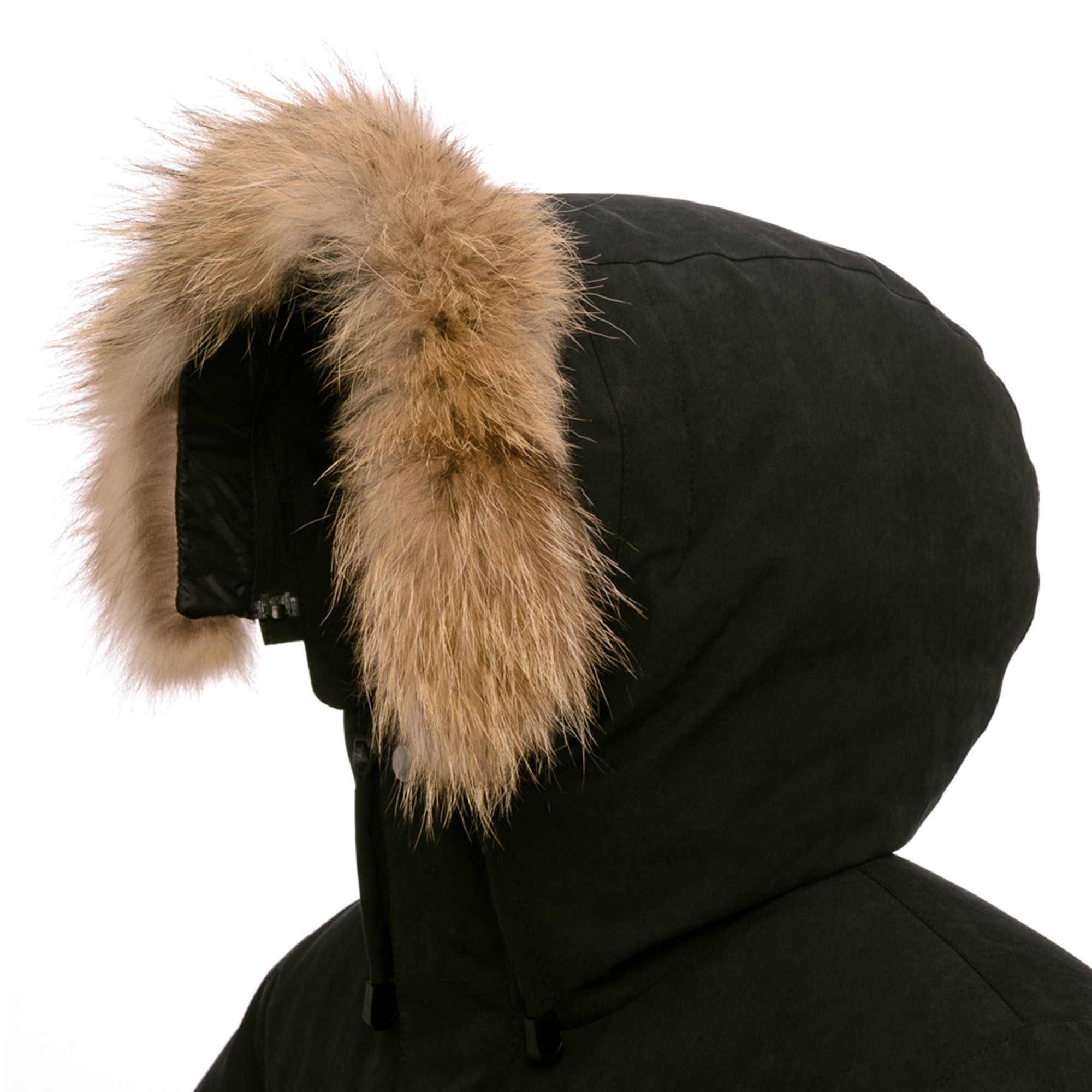 - Отстегивающаяся опушка из натурального меха енота
